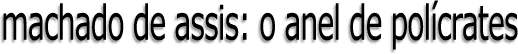 A — Não é estrambótico? Polícrates experimentara a felicidade; o Xavier quis tentar o caiporismo; intenções diversas, ação idêntica. Saiu de casa, encontrou um amigo, travou conversa, escolheu assunto, e acabou dizendo o que era a vida, um cavalo xucro ou manhoso, e quem não for cavaleiro que o pareça. Dita assim, esta frase era talvez fria; por isso o Xavier teve o cuidado de descrever primeiro a sua tristeza, o desconsolo dos anos, o malogro dos esforços, ou antes os efeitos da imprevidência, e quando o peixe ficou de boca aberta, digo, quando a comoção do amigo chegou ao cume, foi que ele lhe atirou o anel, e fugiu a meter-se em casa. Isto que lhe conto é natural, crê-se, não é impossível; mas agora começa a juntar-se à realidade uma alta dose de imaginação. Seja o que for, repito o que ele me disse. Cerca de três semanas depois, o Xavier jantava pacificamente no Leão de Ouro ou no Globo, não me lembro bem, e ouviu de outra mesa a mesma frase sua, talvez com a troca de um adjetivo. "Meu pobre anel, disse ele, eis-te enfim no peixe de Polícrates". Mas a idéia bateu as asas e voou, sem que ele pudesse guardá-la na memória. Resignou-se. Dias depois, foi convidado a um baile: era um antigo companheiro dos tempos de rapaz, que celebrava a sua recente distinção nobiliária. O Xavier aceitou o convite, e foi ao baile, e ainda bem que foi, porque entre o sorvete e o chá ouviu de um grupo de pessoas que louvavam a carreira do barão, a sua vida próspera, rígida, modelo, ouviu comparar o barão a um cavaleiro emérito. Pasmo dos ouvintes, porque o barão não montava a cavalo. Mas o panegirista explicou que a vida não é mais do que um cavalo xucro ou manhoso, sobre o qual ou se há de ser cavaleiro ou parecê-lo, e o barão era-o excelente. "Entra, meu querido anel, disse o Xavier, entra no dedo de Polícrates". Mas de novo a idéia bateu as asas, sem querer ouvi-lo. Dias depois...