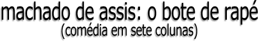 "O bote de rapé" há de ser, para todos os efeitos, considerado conto — conforme o próprio desígnio de Machado de Assis, que assim o publicou e  denominou "comédia em sete colunas", i.e., indicada para impressão — e não peça teatral (como comum, e equivocadamente, catalogada). A narrativa mostra a conversa de um homem e seu nariz, enquanto aguarda ansioso sua mulher voltar das compras e trazer o rapé que ele havia encomendado. [Mauro Rosso]