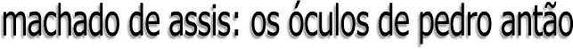 Está já o leitor um pouco atrapalhado com este intróito que lhe parece mais de folhetim que de romance ou então pergunta consigo mesmo a qual destas coisas atribui eu os óculos de Pedro Antão. Isto não é folhetim, nem romance: é uma narração fiel do que me aconteceu há cerca de três anos: é crônica. Quanto a Pedro Antão é positivo que os seus óculos deviam ter por causa o enfraquecimento da vista; mas ainda assim não lhe posso afirmar nada, porque Pedro Antão, que eu não conheci, foi o homem mais singular das tais crônicas, viveu recluso durante a vida inteira e mal consta alguma coisa dos seus primeiros anos.