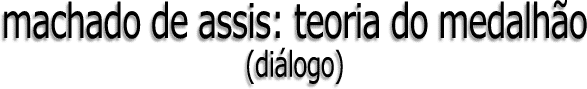 — Conforme. Tens um gênio folgazão, prazenteiro, não hás de sofreá-lo nem eliminá-lo; podes brincar e rir alguma vez. Medalhão não quer dizer melancólico. Um grave pode ter seus momentos de expansão alegre. Somente — e este ponto é melindroso...