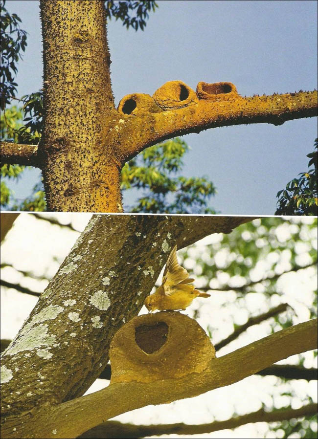 Em muitos casos, o joão-de-barro (Furnarius rufus) constrói vários ninhos lado a lado ou sobrepostos.