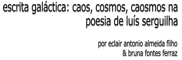 A poesia de Luís Serguilha nos faz perceber que O início é o caos, é do caos que nasce o movimento que cria e recria por meio de explosões, choques. Sua escrita nos remete a uma galáxia em que tudo flutua: solto, livre, formando as mais inesperadas constelações de palavras-seres-coisas-sons-sentidos-cheiros. Assim, o movimento permitido às palavras torna possíveis múltiplas formas de (re) significações, (re) combinações fazendo com que uma escrita fragmentária busque a sua impossível, improvável unidade, unidade mutável, reordenável. Tal característica sugere o grande mistério presente na escrita de Serguilha, pois cabe ao leitor identificar uma unidade para esse texto fragmentário; não uma unidade linear e contínua, mas uma unidade musical, sensorial, já que a leitura da poesia de Luís Serguilha inspira e aflora as mais variadas sensações.