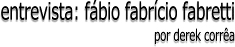 Fábio Fabrício Fabretti (Maringá/PR). Formado em Letras com especialização em Jornalismo Cultural. Publicou livros no Brasil e Europa. Participou das antologias Folhas ao vento e O livro negro dos vampiros, da Editora Andross. Autor dos livros infantis O mistério dos livros (Editora Catedral das Letras) e O mundo rosa de Amarelino (Editora Giostri). Vive no Rio de Janeiro. Mais em seu site: www.fffabretti.com