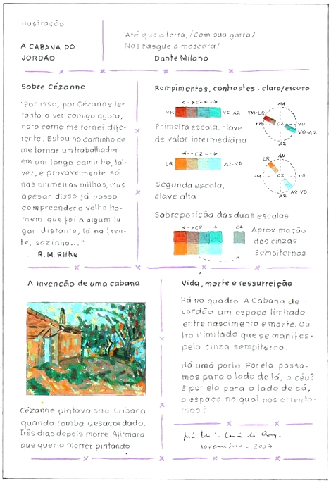 José Maria Dias da Cruz - Cézanne diz que na natureza tudo está colorido. A pintura e a natureza, e ainda como diz o mestre de Aix, a minha própria natureza e a natureza em si, andam de mãos dadas. Portanto, como um pintor cezanneano que sou, não posso deixar de dar à cor um lugar principalíssimo no regime de nossos espíritos.