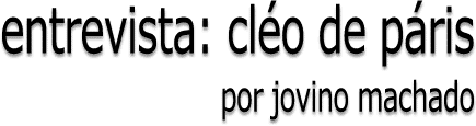Cléo de Páris (Barão de Cotegipe/RS, 1972). Atriz. Faz parte da companhia teatral "Os Satyros". Em 1998, participou do curta A Vida do Outro, em 16mm, que lhe rendeu um Kikito de melhor atriz. Participou das montagens A Filosofia na Alcova, do Marquês de Sade; Cosmogonia, Experimento Número 1, de Rodolfo García Vazquez; A Vida na Praça Roosevelt e Inocência, de Dea Loher; O Dia das Crianças, de Sérgio Roveri; El Truco, de Roberto Áudio; Divinas Palavras, de Ramón del Valle-Inclán; Vestido de Noiva, de Nelson Rodrigues e Liz, de Reinaldo Montero, que teve estreia mundial em Havana, em julho de 2008. No cinema, participou dos filmes Snake (2001); Vou Zoar Até Morrer (2001); Tolerância (2000); A Verdade às Vezes Mancha (2000); Dois Filmes em Uma Noite (2000); Outros (2000); Nocturnu (1998). Atuou no teleteatro Vento nas Janelas, em 2007, com direção e roteiro de Rodolfo García Vázquez, uma co-produção da TV Cultura e SESC. Em 2008, dando sequência ao projeto, fez A Noiva, um telefilme com a mesma equipe, ao lado de Gero Camilo e com roteiro de Ivam Cabral. Também em 2008, esteve no cinema, no elenco de Encarnação do Demônio, de José Mojica Marins e em Booker Pittman, curta-metragem de Rodrigo Grota. Em 2009, estreou o espetáculo Cansei de Tomar Fanta, texto de Alberto Guzik, e direção de Daniel Tavares. Escreve o blogue Pueril.