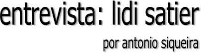 Ela tem como referências Carmen Miranda, Dolores Duran, Edith Piaf, Elba Ramalho e Jane Duboc. Essa é a brasiliense Lidi Satier, cidadã do mundo. Mudou-se para a Holanda, onde começou a desenvolver um estilo de canto voltado para a excelência cênica. Compositora de qualidade inquestionável, Lidi apresentou-se em diversos países da Europa, obtendo elogios por onde esteve. Em 2010, mudou-se novamente de país. Foi para ainda mais longe: Hong Kong, China. Recentemente, se apresentou em Brasília nas comemorações dos 50 anos da capital. O espetáculo foi registrado em vídeo e circula pelo YouTube [http://www.youtube.com/watch?v=Xzbt2U4vw4o]. Dona de uma voz afinada, Lidi Satier tem se revelado, também, grande letrista. Nesta entrevista, ela conta como foi seu encontro com a música, fala de suas influências, sua paixão pela arte. Lidi Satier é o som e a cor brasileira passeando por um mundo que, com certeza, para ela, é bem menor do que o mundo dos mortais comuns. [Antonio Siqueira]