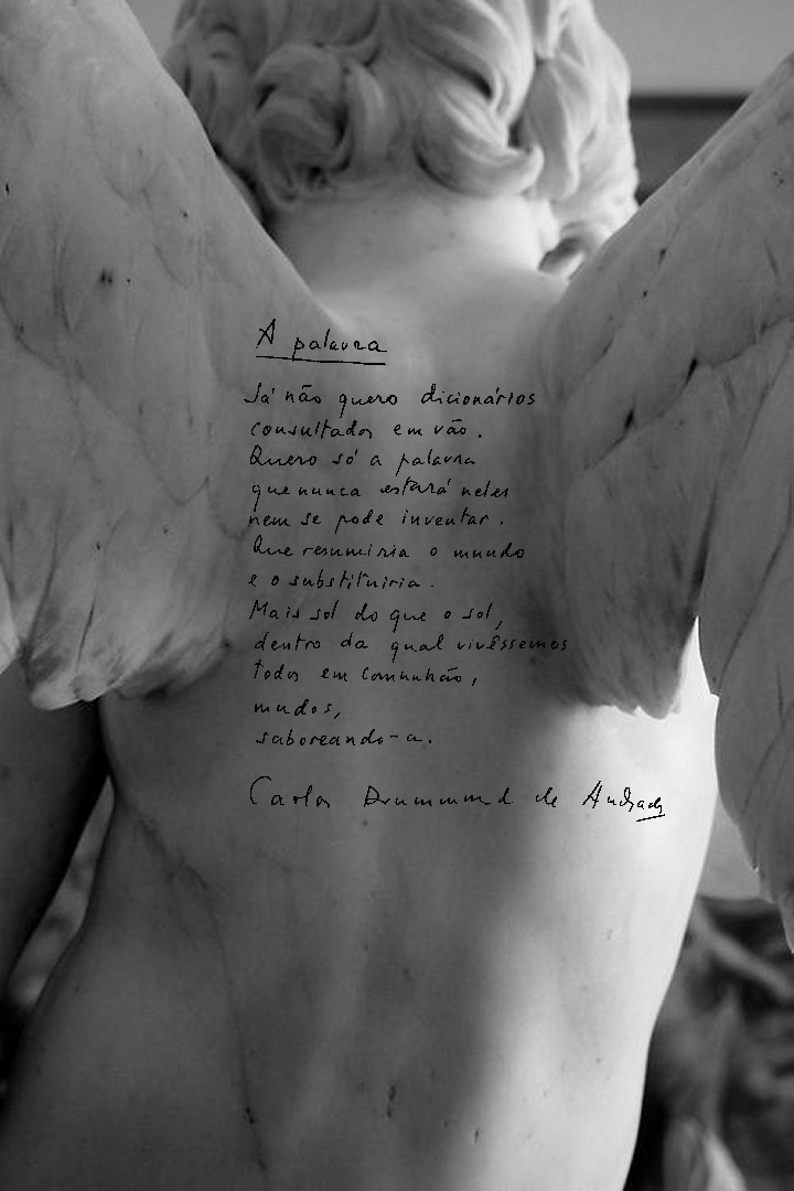 e neste domingo frio e de sol ardido me aparece um anjo com as asas estropiadas. bêbado. falando de lua, drummond, raimundo, conhaque.