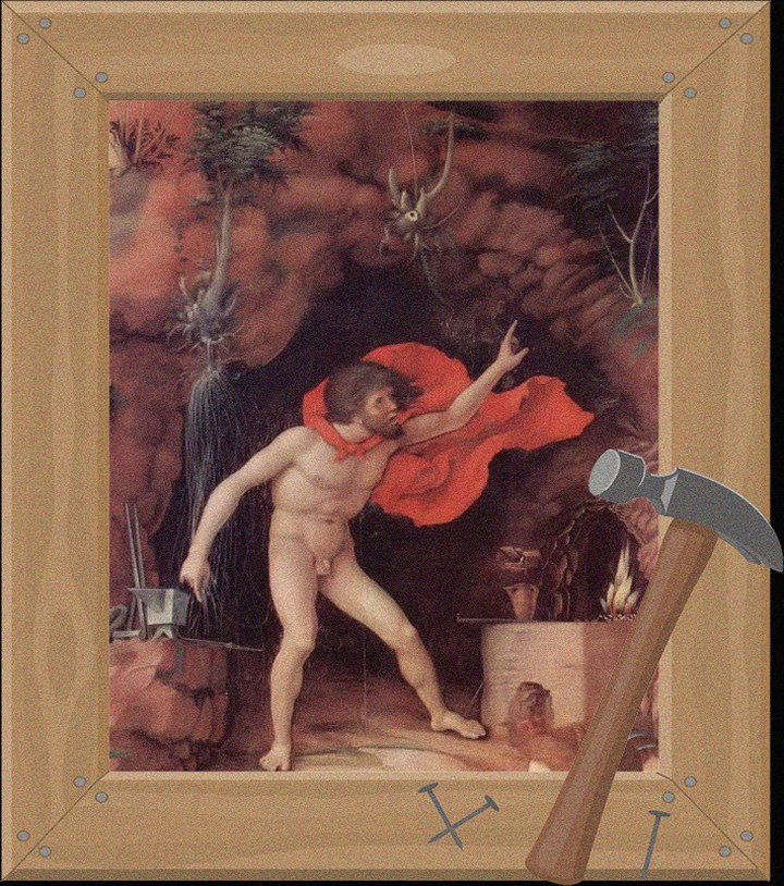 A ironia homérica, aqui disposta, está no fato de Vulcano protagonizar o risível, não por sua desastrosa aparência, mas por seus artificiosos dotes. E nem nos referimos aqui à sua engenhosidade no manuseio da forja e do martelo em densa fornalha ("Ora com sopro lento, ora apressado,/Segundo o que há na mente e quer o artista./Cobre o indômito ao fogo e estanho e prata/E ouro pôs fino, ao cepo vasta incude,/A tenaz numa mão, noutra o martelo."), mas de sua astúcia no trato com as palavras.