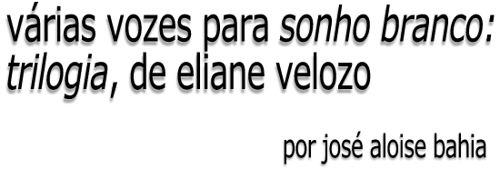 "No Sonho Branco, Eliane Velozo busca sua ancestralidade na tentativa de juntar os seus 'retalhos', e, com isso, tece sua história, trazendo à tona toda sua memória, que é uma metáfora da história de muitos brasileiros". [Babilak Bah, Belo Horizonte/MG]