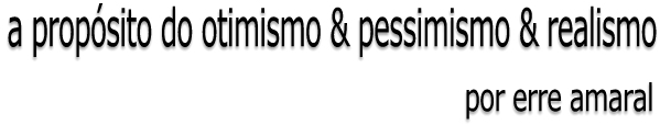 Nesse sentido, otimismo e pessimismo, a meu ver, não são os outros da realidade ou do realismo. Ser otimista ou ser pessimista são modos de encarar determinada realidade ou realismo. Ambos, o otimista e o pessimista têm uma visão realista do mundo, a diferença está na maneira como cada um deles encara a realidade ou o realismo do mundo: sendo otimista ou pessimista e colhendo os sabores e os dissabores daí decorrentes.