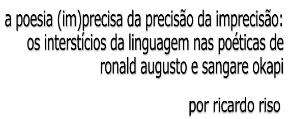 Procuramos na brevidade deste artigo demonstrar que a partir da percepção das literaturas negro-diaspóricas para os comparativos da literatura brasileira e das literaturas africanas de língua portuguesa podem contribuir para a expansão do campo. Para esse intento, é fundamental a abertura oferecida pelos estudos encruzilhados e a perspectiva negra acompanhando as experimentações possíveis, oriundas de outras tendências estéticas, que os poetas Ronald Augusto e Sangare Okapi podem fornecer para a transformação ininterrupta e ilimitada com a linguagem. Poéticas com a sintaxe escassa e a fragmentação rumo à abstração, que sugerem mais do que propriamente se preocupam em dizer, transcendem o que se convencionou na literatura negro-brasileira e na literatura moçambicana, e, navegando por áreas maiores, a literatura brasileira e as literaturas africanas de língua portuguesa. Sendo assim, a poesia só tem a ganhar com a precisão da imprecisão desses dois poetas que percorrem os interstícios da linguagem.