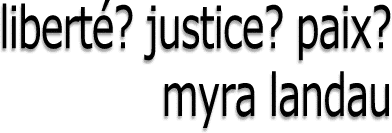 Myra Landau: "Nasci em algum lugar do Velho Continente. Vivi no Brasil, no México, na Itália, e há alguns anos, moro em Israel. Portanto, considero-me apátrida. Não acredito em fronteiras, não gosto de bandeiras, não tenho limites. Única pátria: amizade, amor e justiça para todos. Falo seis línguas, nenhuma perfeitamente. Características: cabelo jovem e branco. Currículo muito longo: ninguém iria ler. O resumo dele é muito difícil de fazer, porque não sei o que ressaltar. Para mim, tudo é importante. Cerca de 60 exposições individuais em museus, universidades, institutos culturais e galerias importantes em toda a América e Europa. Mais de 150 exposições também nas Américas e na Europa. Paul Westheim, José Augusto França, Marcel Janou, Quirino Campofiorito, Aracy Amaral, Mario Pedrosa, Jorge Olvera, Jorge Alberto Manrique, Rita Eder, Fernando Andrade Cancino e muitos outros, apreciaram e discutiram o meu trabalho. Newfoundland Franco ("Petite Galerie" - Rio de Janeiro) e Oswaldo Goeldi foram os primeiros a acreditar em meu talento. Dois grandes sonhos de hoje: continuar a pintar, desenhar, reciclar tudo o que puder para transformar em arte e tornar-me uma escritora". Mais em seu site: myralandau.com e blogue: myra-parole.blogspot.com.