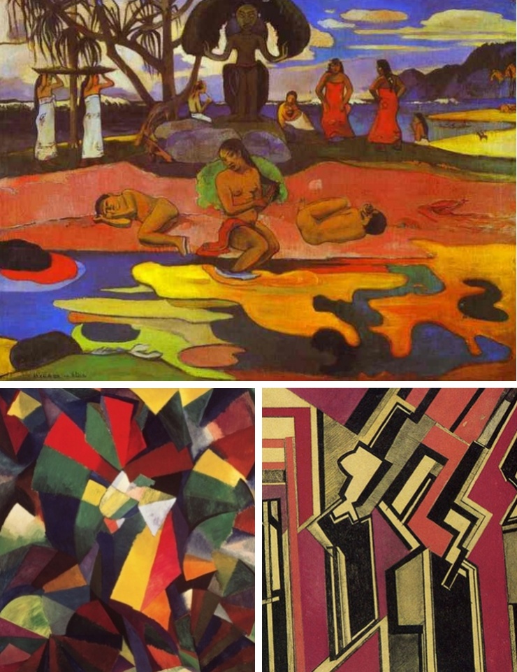 SINTETISMO: imagem da pintura Dia dos Deuses (Mahana No Atua, na língua do Taiti, quando o pintor retornou de uma viagem à ilha da Polinésia), do francês Paul Gauguin, 1894.
