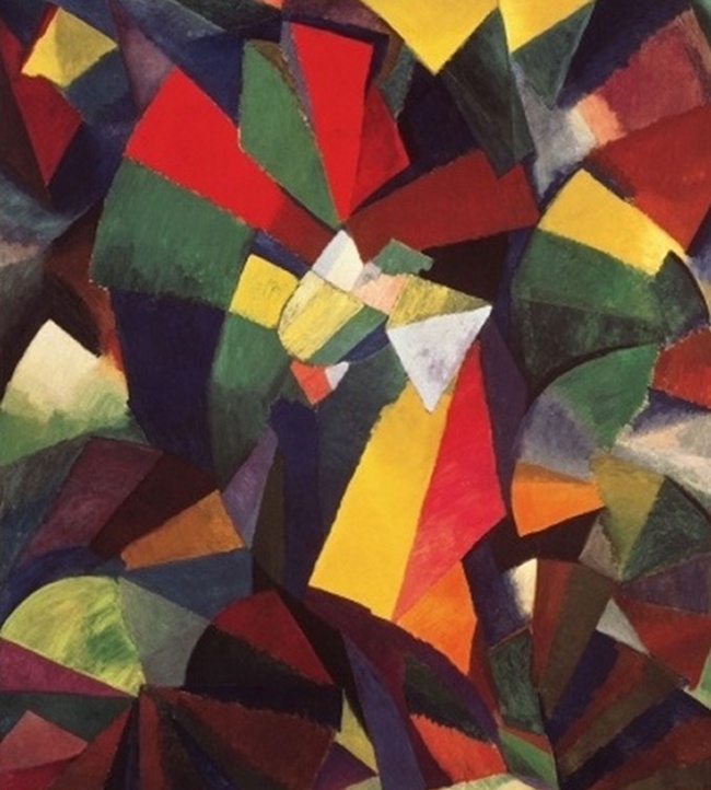 VORTICISMO: imagem da pintura Red Duet, de autoria do inglês Wyndham Lewis, 1914.
