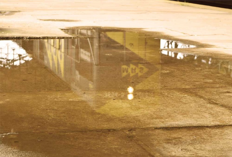 Reflexo de um trem da empresa MRS Logística S.A. na água. Valinhos/SP, 2016.