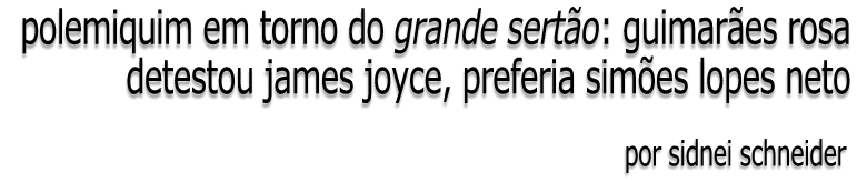 Quem busca etiquetar uma feição joyceana no romance de Guimarães Rosa, talvez se surpreenda com o que vamos afirmar acerca da importância das inovações técnico-narrativas do "regionalista" gaúcho Simões Lopes Neto para a criação de Grande sertão: veredas.
