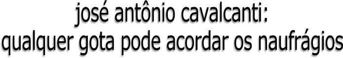 José Antônio Cavalcanti. Poeta, ficcionista, ensaísta e professor. Autor de Anarquipélago (poemas, Ibis Libris, 2013); Palavra desmedida: a prosa ficcional de Hilda Hilst (Annablume, 2014); Fora de forma & outros foras (contos, Ibis Libris, 2015); Movimento Suspeito (poemas, Urutau, 2016), e Linha de instabilidade (Urutau, 2018). Participou das antologias 29 de abril: o verso da violência (Patuá, 2015) e Casa do desejo (Patuá, 2018). Textos em Mallarmargens — Revista de Poesia e Arte Contemporânea, Revista Zunái, Revista Eutomia, Caderno Ideias do Jornal do Brasil, Periódico de Poesía (MX), Cronópios, entre outras.