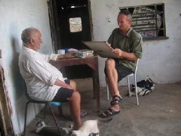 Cícero evita fitar o interlocutor e, nos raros momentos em que isso ocorre, demonstra desconcerto. Mas, de soslaio, Cícero sorri, conta causos e até arrisca um breve ensaio poético sobre a essência imutável da arte. ''Essa arte é muito bonita porque é uma lembrança que fica depois da morte'', sensibilizou-se. Ver-se retratado em um suporte diferente da fotografia tornou-o apreciador da pintura. ''Gosto muito de vir aqui e ver as coisas que ele faz, já trouxe muitos amigos meus para verem meu retrato e todos querem um também'', admitiu.