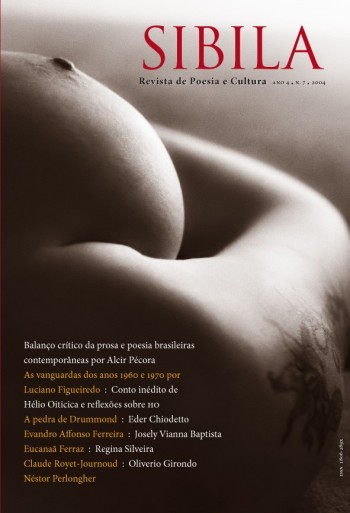 Capa da edição nº 7 / dezembro de 2004 "Sibila promove, em seu novo número, um balanço da crítica, da poesia e da prosa brasileira contemporânea, que, ao olhar desavisado, podem parecer, enganosamente, como afirma Alcir Pécora, das mais "vibrantes do mundo". Em seu longo ensaio (ou peça de ficção?), que não queremos antecipar neste espaço, Pécora demonstra como a produção atual, mesmo a supostamente avant-garde, à maneira concretista, é pensada como "tributo" e não como invenção". (Do Editorial, de Régis Bonvicino e Tatiana Longo dos Santos) Nas livrarias ou na