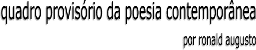 Ronald Augusto (Rio Grande-RS, 1961). Poeta, músico, letrista e crítico de poesia. É autor, entre outros, de Homem ao rubro (1983), Puya (1987), Kânhamo (1987), Vá de valha (1992), Confissões aplicadas (2004) e No assoalho duro (2007). Tem poemas, artigos e/ou ensaios publicados em várias revistas nacionais e estrangeiras. É co-editor, ao lado de Ronaldo Machado, da Editora Éblis. Ministra oficinas de poesia. É integrante do grupo os poETs. Assina os blogues Poesia-Pau e Poesia Coisa Nenhuma.