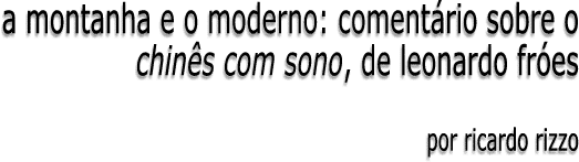 Um mundo sensorial construído a partir de fragmentos de sons, vozes encantatórias, ventos, "pinceladas de luz", filetes de narrativa e experiência. Em Chinês com sono, de Leonardo Fróes, os elementos vão assim se combinando numa imagética bastante coesa, vazada numa dicção muito particular. A artesania é madura e sem excessos que dificultem a apreensão do significado geral dos poemas. A musicalidade meditada dos versos, reproduzindo o que poderia ser o ritmo calmo da atitude contemplativa, é claramente decantação de um convívio paciente com a estrutura material do poema e suas arestas, e embala muitas vezes algumas das melhores melodias do livro: "Seus chamados e rugidos, / silvos, estalos, estrondos. Seus avisos / à bicharada recolhida nas tocas" (Terra brava).
