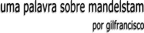Mandelstam é um poeta russo comparativamente pouco conhecido dentro e fora do seu país, mas é talvez o melhor daquela galáxia dos bons poetas, ofuscados pelo stalinismo, capaz o bastante para nos fazer acreditar na sua inquestionável palavra, de impiedosa independência, sua recusa a reverenciar os temas ideológicos do momento.