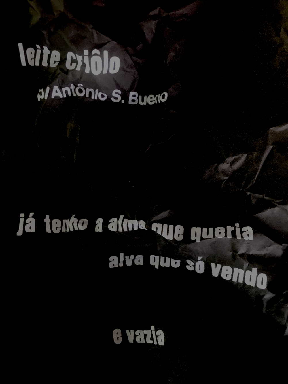 [Publicado originalmente no livro de estreia do poeta, Festim — um desconcerto de música plástica (Ed. Orikis, 1992), o poema passou por um processo de reimaginação que envolveu "escanagem" + impressão a jato de tinta + fotografia digital]