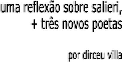 É óbvio: isso gera uma ciumeira violenta. Poetas (ou artistas de qqer tipo) muito bons são hostilizados pelos outros, porque todos têm medo de seu poder ofuscante. Normalmente as pessoas, ou seus pares, confessam, pessoalmente a ele ou ela, que apreciam seu trabalho, por desencargo de consciência, mas ajudam como puderem a criar um volumoso silêncio público em relação a sua obra. Foi o que Milos Forman quis demonstrar com o seu Amadeus (1986), no multifacetado personagem de Salieri, justamente célebre na interpretação de F. Murray Abraham.