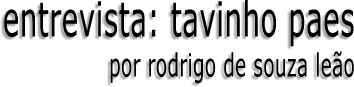 Tavinho Paes, 1955, poeta, 100 microlivros publicados. Compositor musical gravado por Caetano, Lobão, Rita Lee, Ney Matogrosso, Maria Bethânia, Marina Lima, etc. Jornalista, editor de O Pasquim. Performer, artista plástico. Produtor de trilha musical para cinema, carnavalesco fundador do Bloco dos Valérios, diretor de eventos de poesia como poemaShow, Semana Santa em Santa e Poesia Voa (Festival de Poesia do Circo Voador). Webmaster/designer de sites como www.poemashow.com.br e www.pasquinet.hpg.com.br.